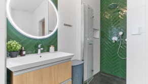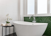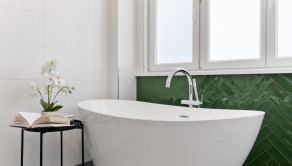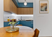Kvalitné podlahy. Klimatizácia. Podlahovka v storočnom tehlovom dome. Voľne stojaca vaňa. A nábytok na mieru doplnený o retro kúsky, ktoré dávajú bytu dušu.