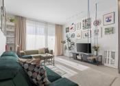 Bývaj v srdci Slnečníc. Kde nová električková trať ti z centra spraví pár zastávok, a štvrť sa mení na plnohodnotné mestské prostredie s parkom, promenádou, cyklotrasami a kompletnou občianskou vybavenosťou.