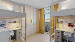 Kvalitné vinylové podlahy, klimatizácia, šatník, orientácia do vnútrobloku, garážové státie.